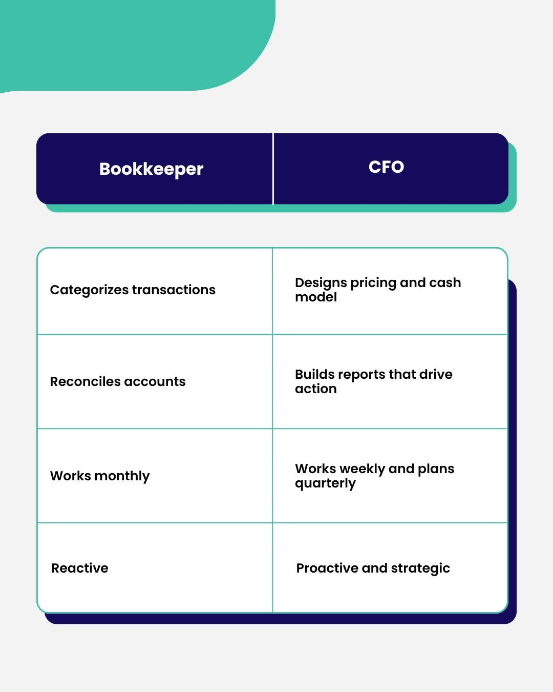 A bookkeeper records what happened. A CFO interprets it and makes you act on it.